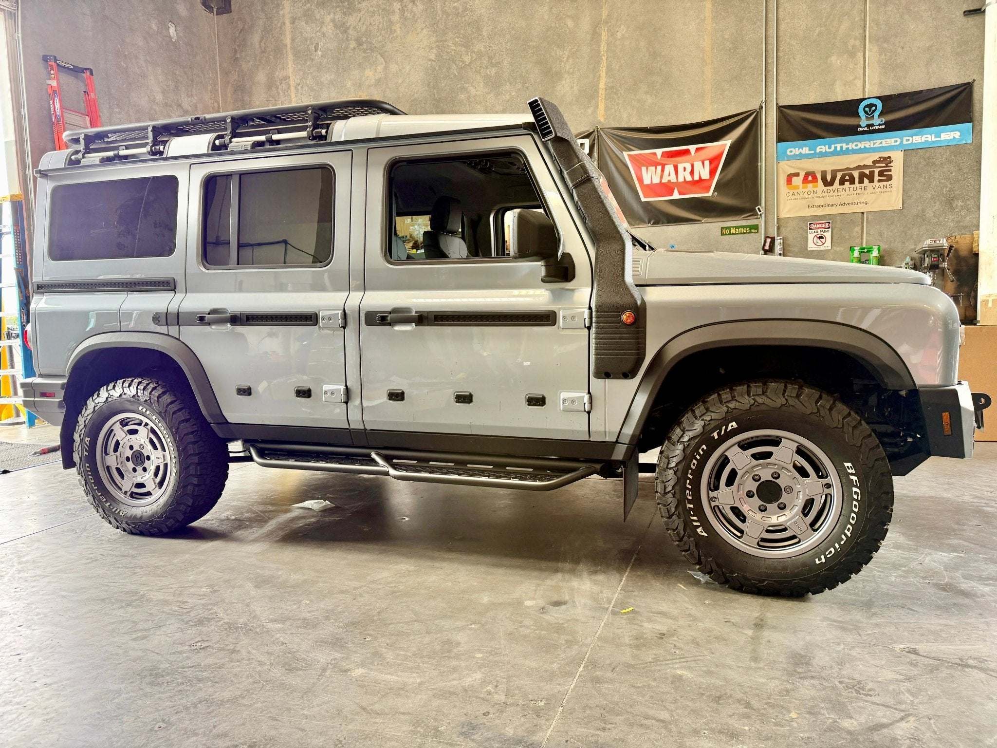 Offset. Owl did not repurpose a truck wheel like most companies. Instead, we used an aggressive offset to widen the track of your Grenadier. This allows for better stability off road and better edge traction when grabbing the walls on a killer Moab trail.