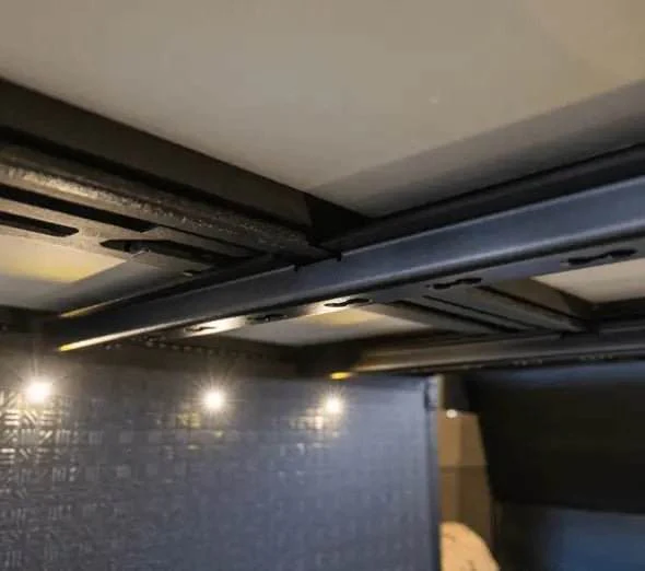 Refine your sleep setup. The Shuksan Legless Bed Support System eliminates the need for vertical bed legs in your Storyteller van, opening up your under-bed storage and creating a cleaner, more modular living space. The bracket system mounts directly to the van walls, offering a rock-solid platform for your mattress that frees up room for bikes, bins, or custom drawers.