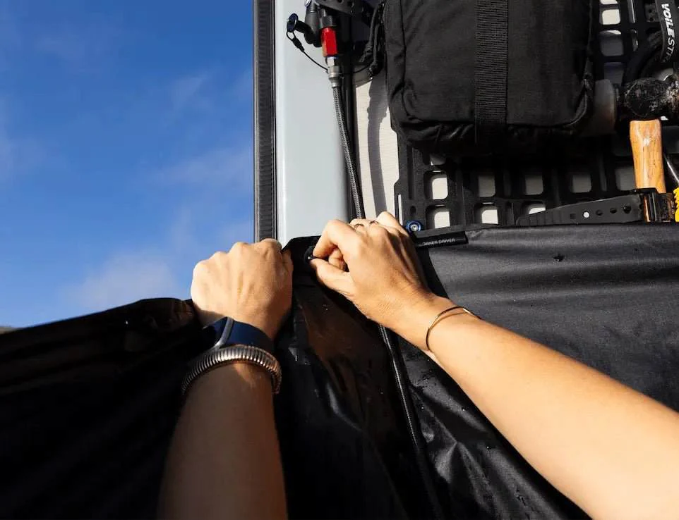 Designed for vanlife, built for real use. The Vannon Shower Curtain gives you privacy, splash protection, and an easy-clean surface—perfect for quick rinses or full-on campsite showers. Made from durable ripstop nylon with a water-repellent finish, it’s designed to hang easily from your van’s rear doors or roof rack system. It packs down small, sets up fast, and transforms any outdoor space into a functional rinse station. Whether you’re chasing waves, climbing peaks, or just keeping clean off-grid, this is one of those small luxuries you’ll never want to travel without.